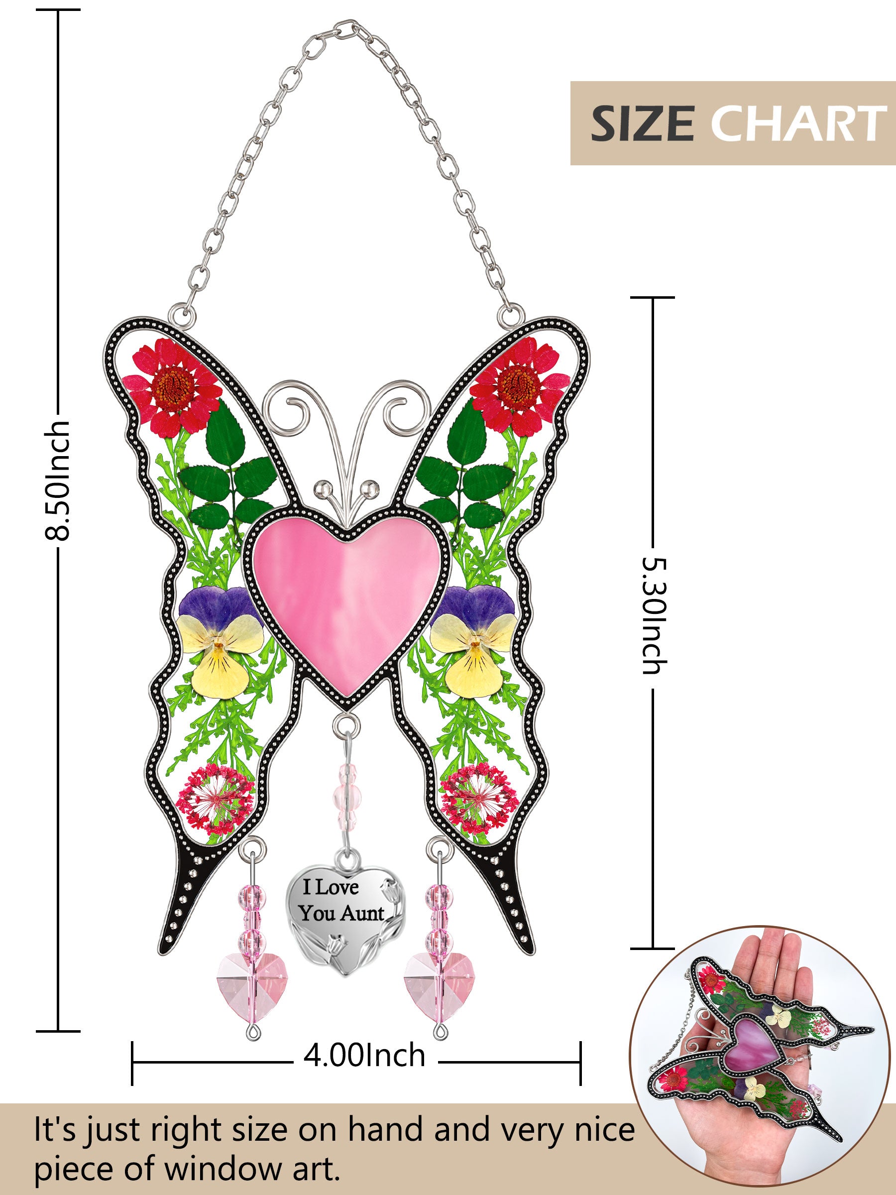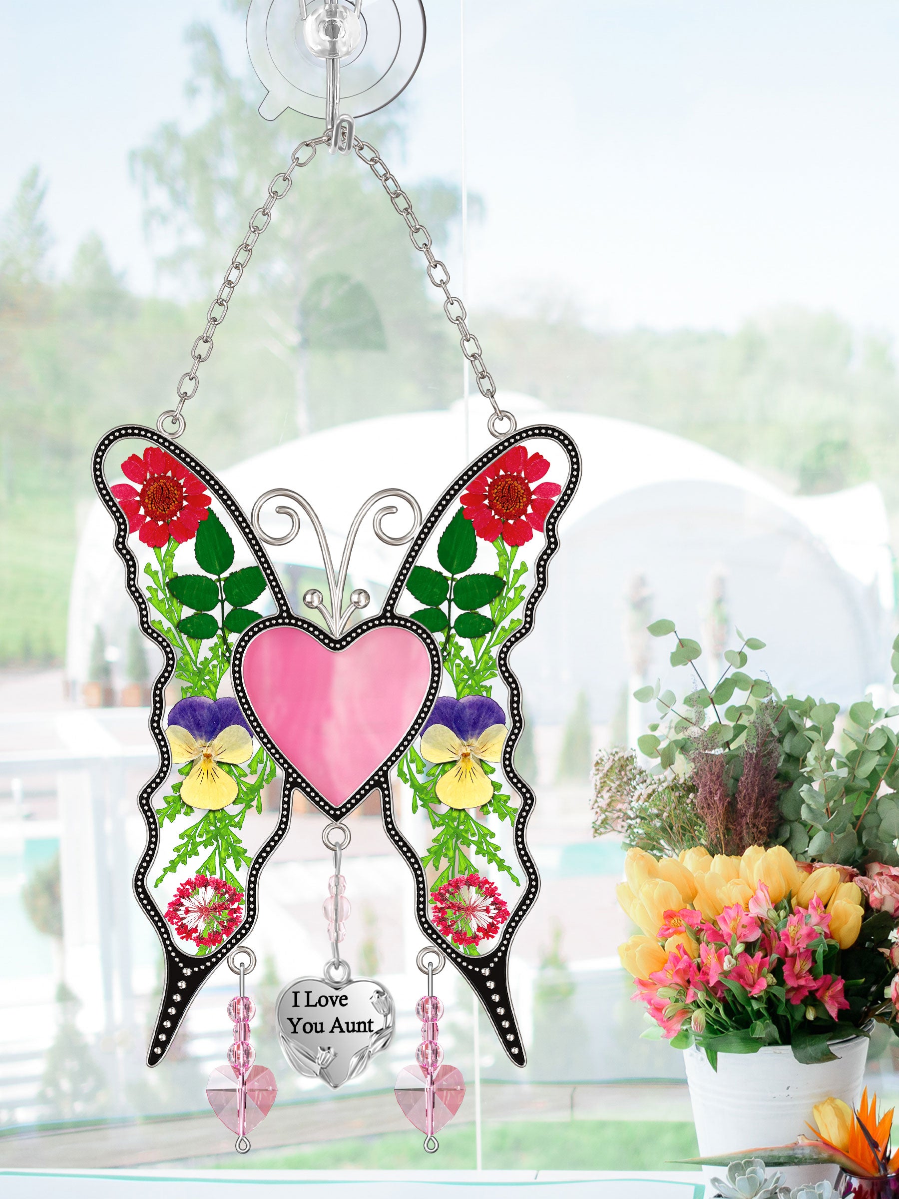Butterfly Suncatcher with Real Flowers – "I Love You Aunt" Heart Gift