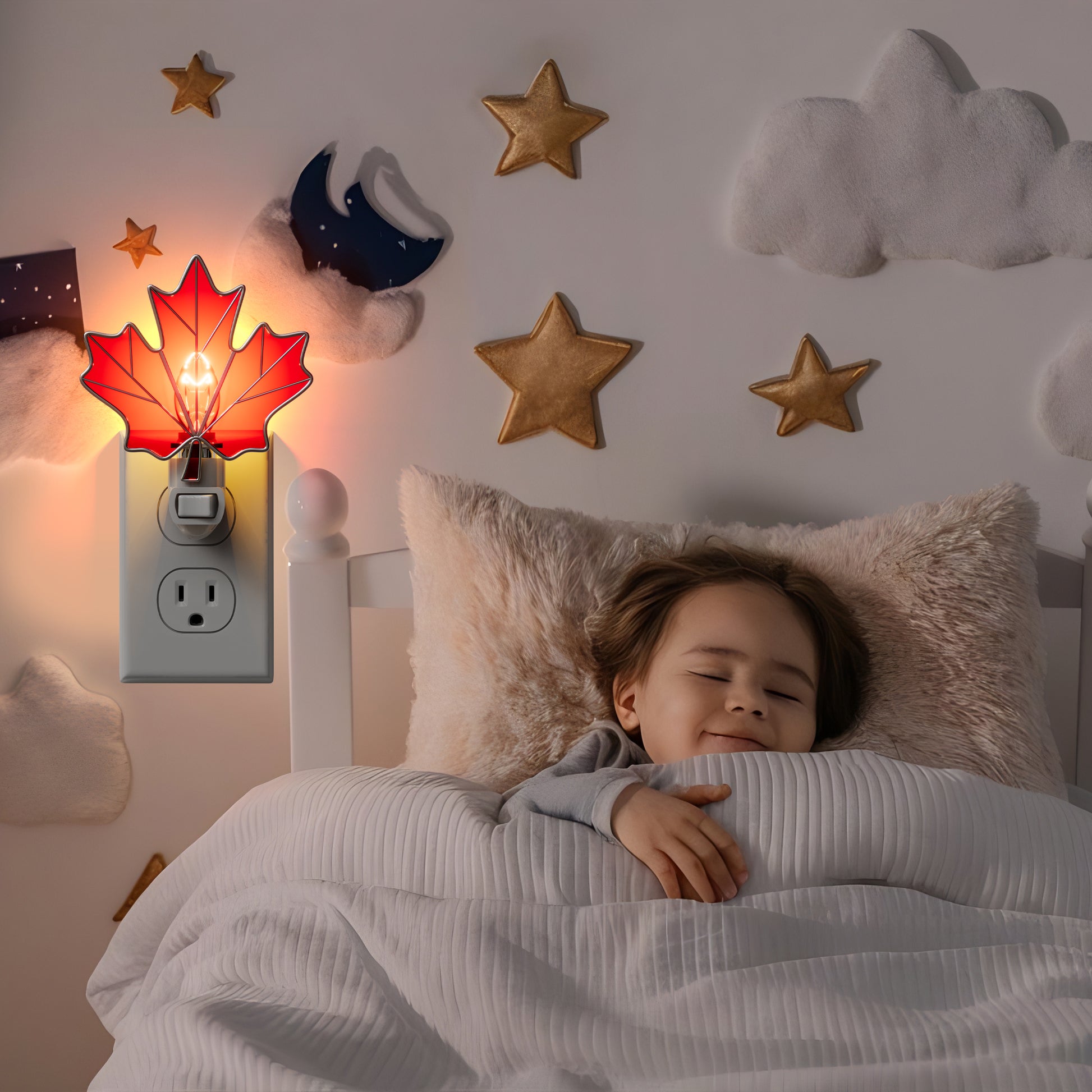 Bring a touch of Canada’s charm into your home with this Maple Leaf Stained Glass Night Light. Designed with vibrant red stained glass in the shape of a maple leaf, it casts a 3000K soft warm glow that creates a cozy and welcoming atmosphere. Perfect for bedrooms, hallways, living rooms, or as a thoughtful gift, this night light provides gentle illumination that won’t strain your eyes in the dark.