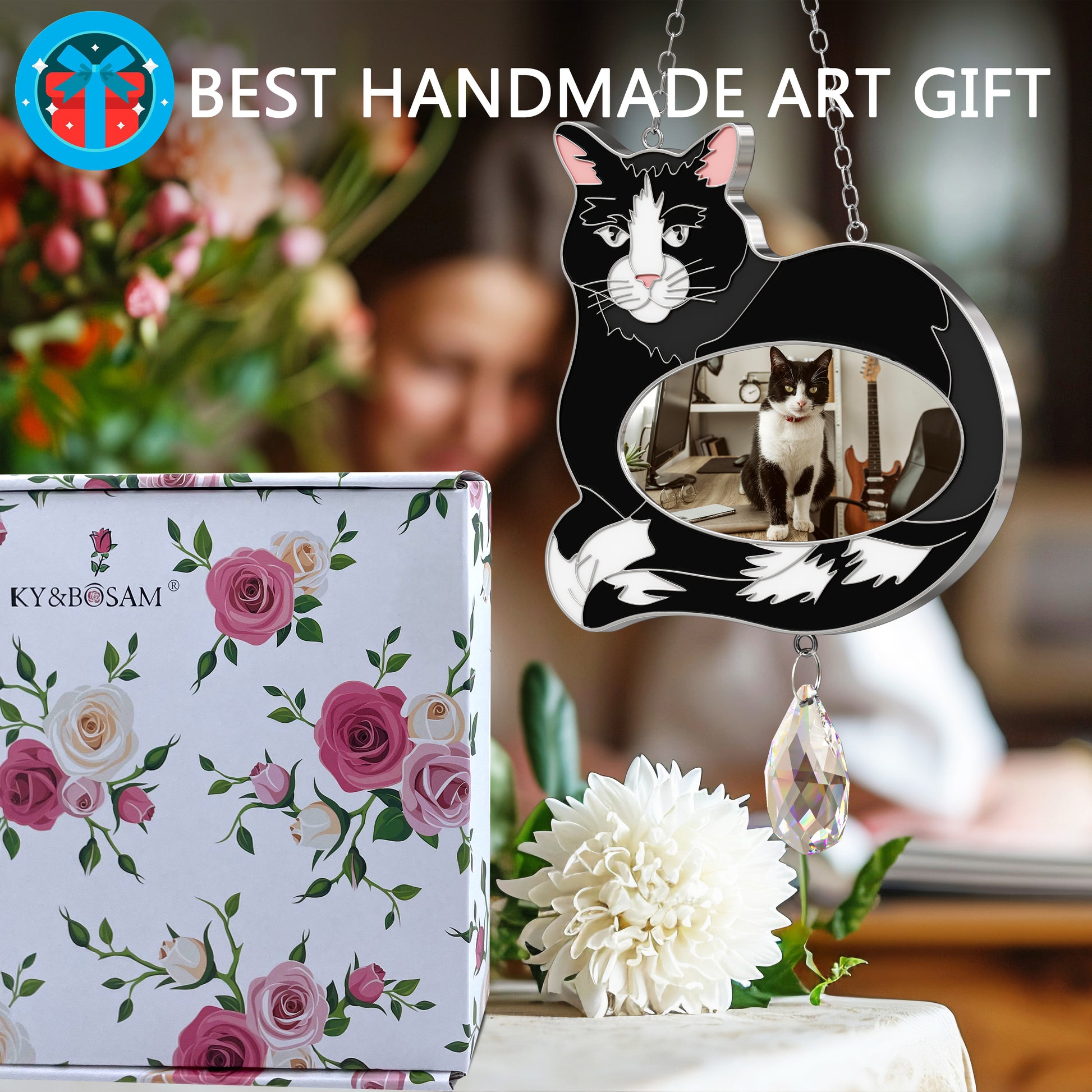 Perfect for hanging in a window, living room, office, or as a keepsake, this cat-themed ornament is both a charming décor piece and a meaningful way to showcase your furry friend. It also makes a wonderful gift for cat lovers, pet parents, and animal enthusiasts.